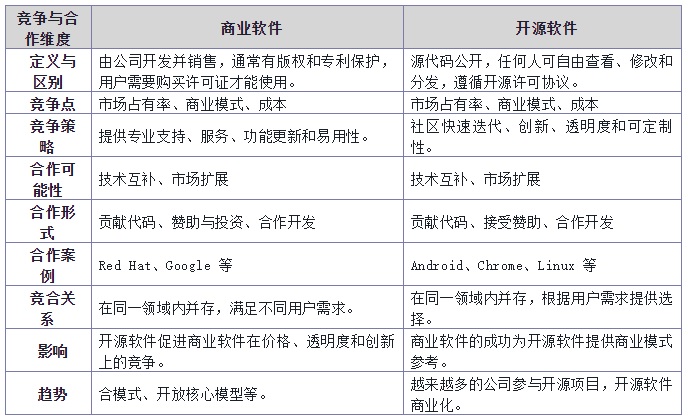 商業(yè)軟件與開源軟件之間的競爭與合作是一個復(fù)雜且多維度的現(xiàn)象,它們在軟件行業(yè)中扮演著不同的角色,并且在某些情況下相互對立,在其他情況下則相互促進(jìn)。