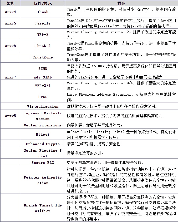 在ARM架構的發展過程中,每個版本的更新不僅提升了整體性能,還針對不同應用場景進行了優化: