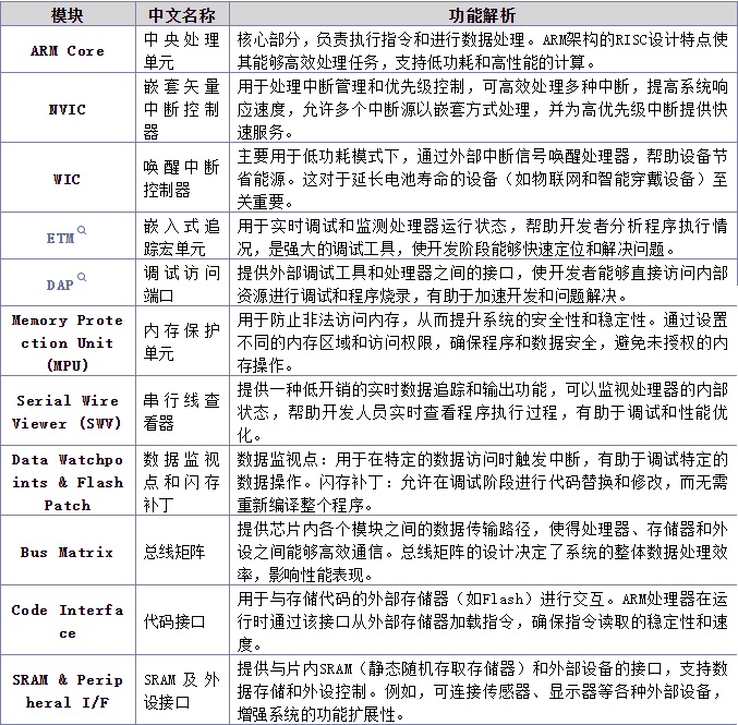 DAP和ETM等調試模塊為開發者提供強大的調試工具,方便進行程序優化和問題排查。