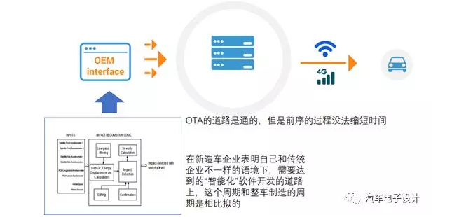 從這個(gè)意義上來看,這打破了原來既有的整車開閥制度,在G6到G5的開發(fā)階段很難有足夠的時(shí)間來軟件做完,使得G4的試驗(yàn)認(rèn)證的工作只能覆蓋基礎(chǔ)的這部分。事實(shí)上,越來越短的開發(fā)周期和越來越多的軟件開發(fā)工作,確實(shí)成了一組矛盾。這也是OTA如果實(shí)現(xiàn)在C端的更新,對(duì)于車企的很大的意義,它能拾遺補(bǔ)漏,幫助車企把問題進(jìn)行修正,繞過了4S店的環(huán)節(jié)。