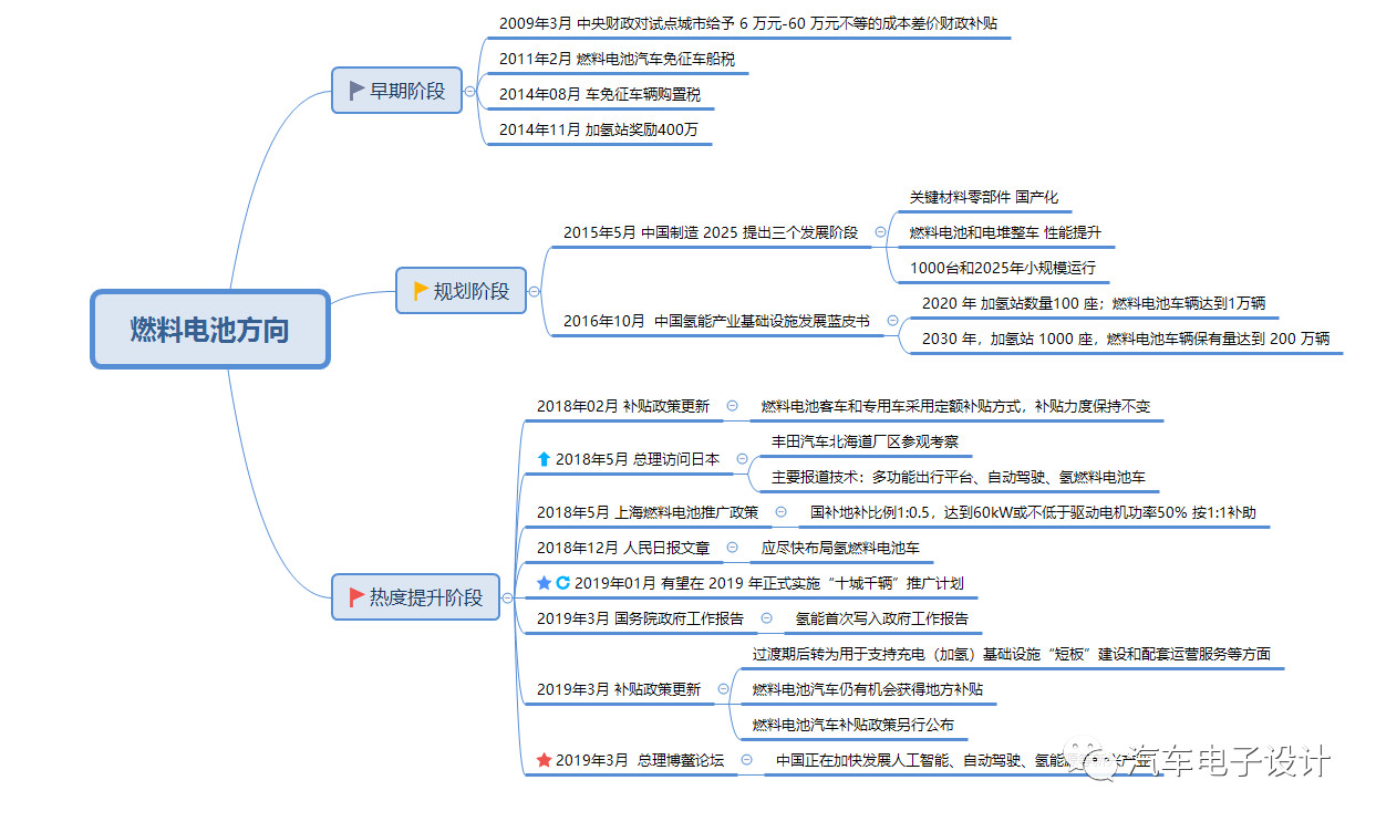 早期階段:燃料電池在2009-2014年,在補貼有、免購置稅等與鋰電相當的措施下,受到早期技術壓制的狀態,大量的研究人員、從業人員從燃料電池轉入鋰電行業
