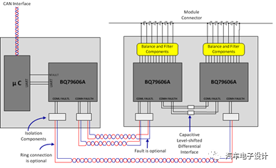6)網絡通訊和喚醒電路:電池管理系統是需要與整車動力總成、車身網絡等整車網絡節點通信,也需要進行對應的網絡管理和喚醒休眠管理。