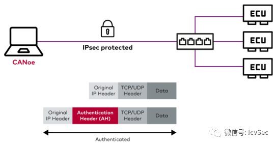 附加的vIpSec允許根據IETF RfC 4301建立IPsec通信。根據RfC 4302,功能被限制在傳輸模式和Authentication Header的使用。身份驗證頭將數據完整性和數據驗證添加到有效載荷,但不允許保密。