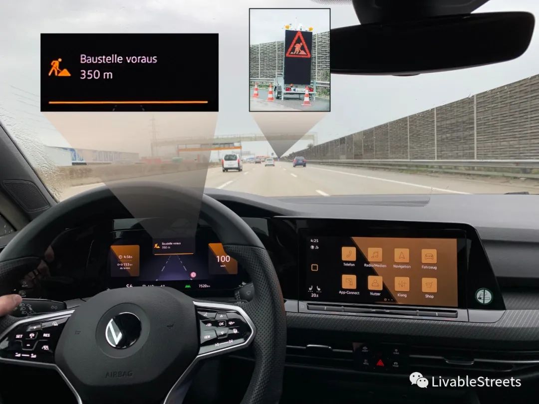 "施工現(xiàn)場預(yù)警“:在道路施工現(xiàn)場前幾百米,已經(jīng)通過C-ITS指示出了危險(xiǎn)區(qū)域。這提升了道路安全。