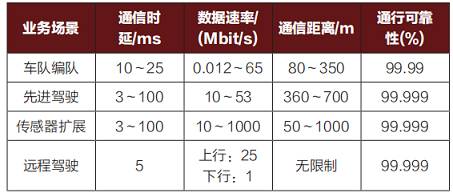 駕駛:遠程駕駛使遠程司機或車聯網應用服務器遙控車輛的行駛,適應于車主不能自己駕車或遠程車輛處于危險環境中等特殊場景。高可靠性和低延遲通信是遠程駕駛的主要要求。5GV2X業務場景對通信的需求,具體如表1所示。