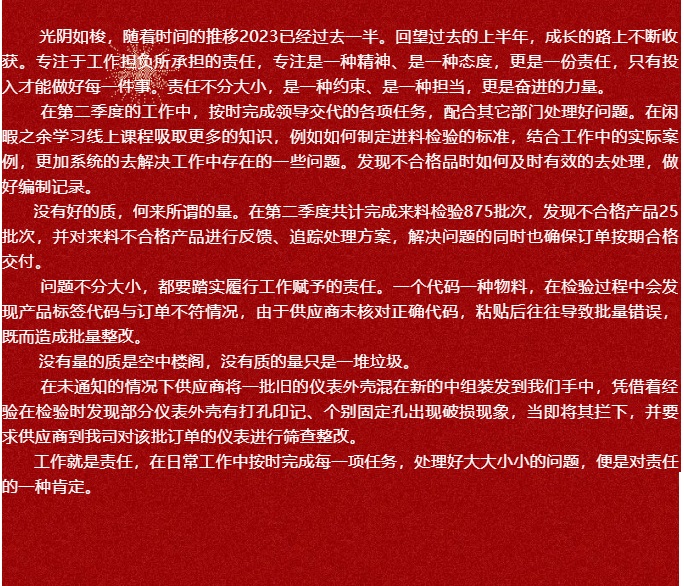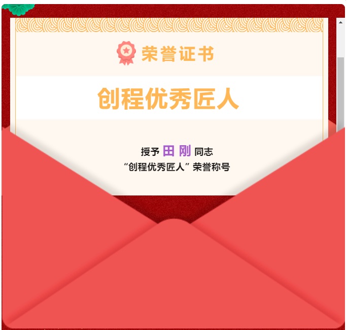 2023年第二季度評優 —— 創程優秀匠人【田剛】