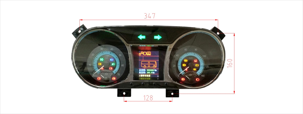 - 2個步進電機驅動的指針表盤 - 18個LED符號片 - 多個TFT符號片 - 3.5寸TFT彩色液晶屏 - 一個多音頻蜂鳴器 |